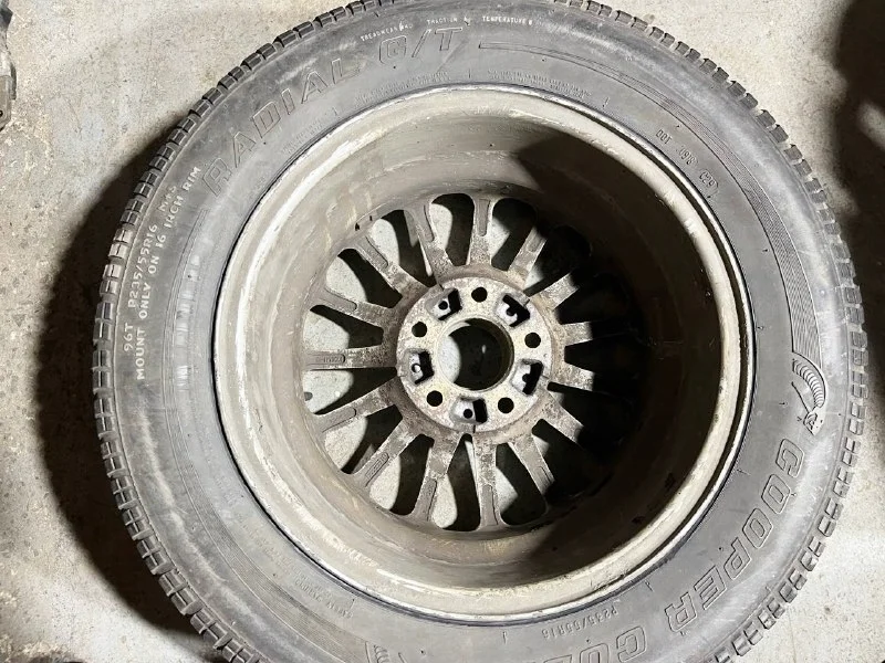 Б/У, оригинал. 71/2JX17 ET:20. Резина плохая. Один диск заварен, второй с трещиной.